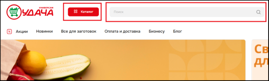 - Рядом с кнопкой «Каталог» вы увидите длинное пустое поле с иконкой лупы. Это «Поиск». (рис. 1)