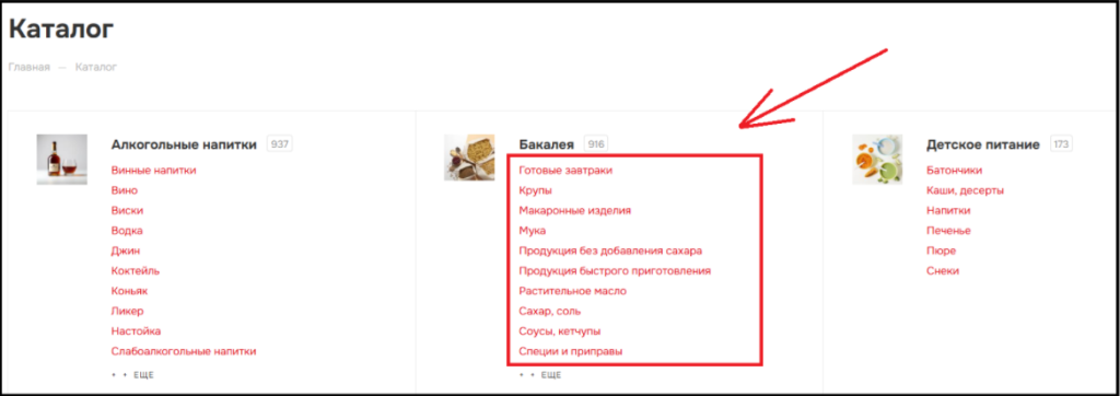 - Перед вами откроется список всех категорий (например, «Наше производство», «Товары для дома», «Бакалея»). Нажимайте на ту, что вам интересна. (рис.2)